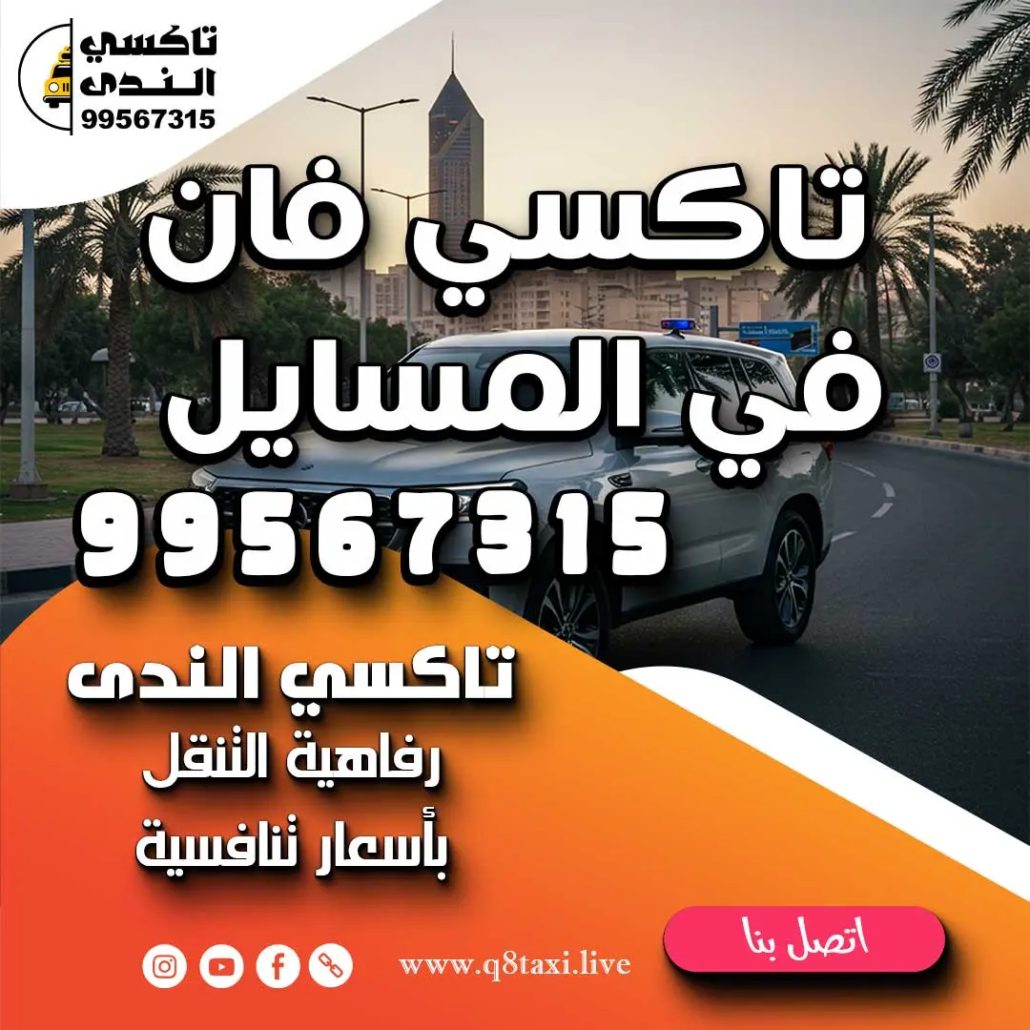 في هذا المقال، سنأخذك في جولة شاملة حول عالم تاكسي فان في المسايل، ونستكشف معًا لماذا يعتبر الخيار الأمثل لتلبية احتياجات تنقل مجموعتك في هذه المنطقة الحيوية. كما سنتعرف على خدمات تاكسي الندى 99567315، المزود الرائد لخدمات تاكسي الفان في المسايل، وكيف يمكنك الاستفادة من هذه الخدمات المميزة لتجعل تنقلاتك الجماعية أكثر سلاسة وراحة.
